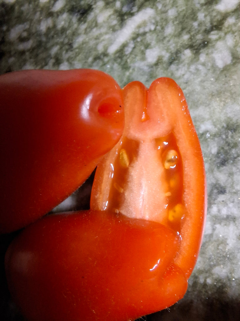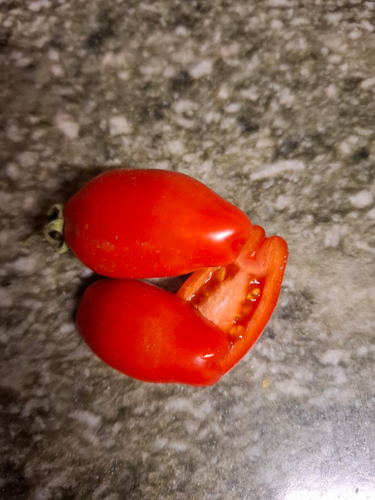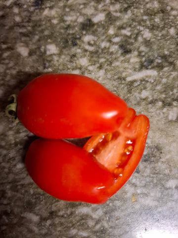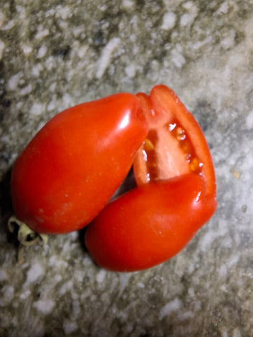 Russische Buschtomate, nur etwa 50cm hoch, mildfruchtige Eiertomate, ideal zum Trocknen und für Pasta, nicht ausgeizen!