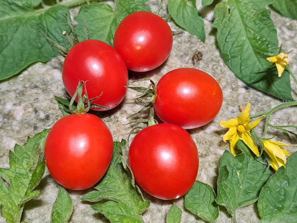 Sehr leckere cremig zarte, längliche Cherrytomate, Buschtomate aus Russland, kein Ausgeizen!