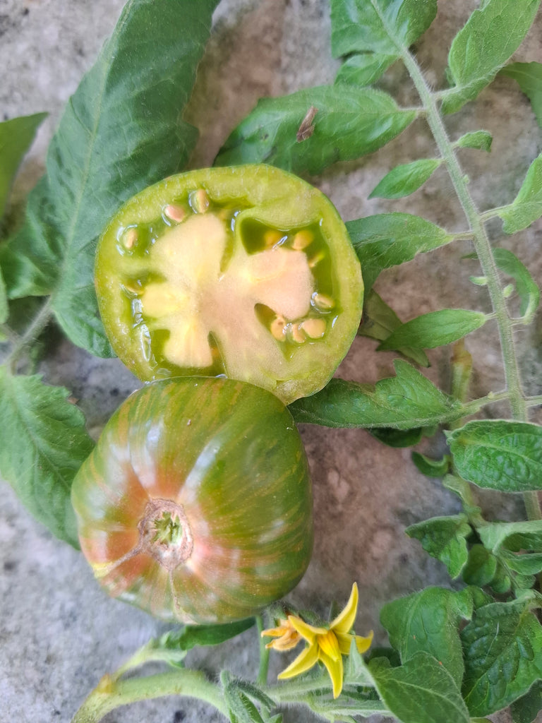 Wundervolle Salattomate aus der Reinsaatzüchtung, fruchtig-süßer Geschmack, cremig zartes Fruchtfleisch, tolles Farbspiel im Reifeprozess! Hätte das Zeug zur Jahres-Best-of! Aber leider zu wenig Samen verfügbar 😅