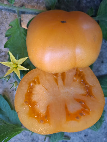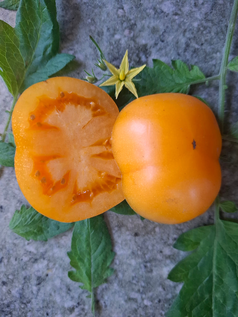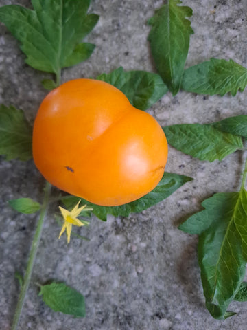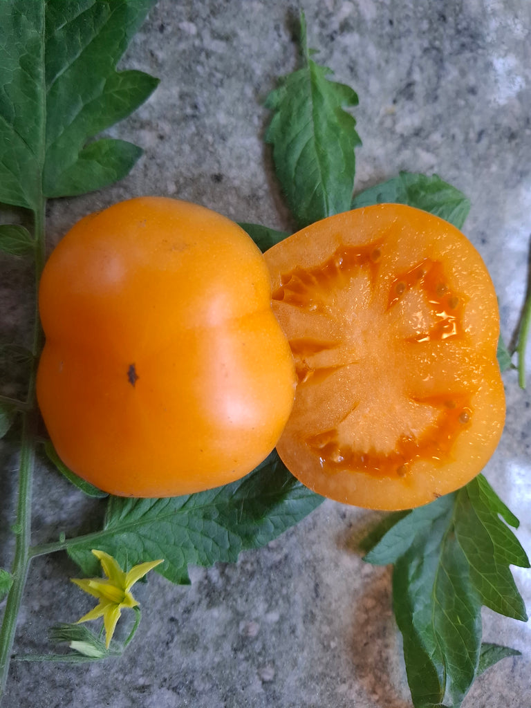 Wundervolle kleine orange Fleischtomate mit dünner Haut und fruchtig süßem Geschmack, zartes cremiges saftiges Fruchtfleisch