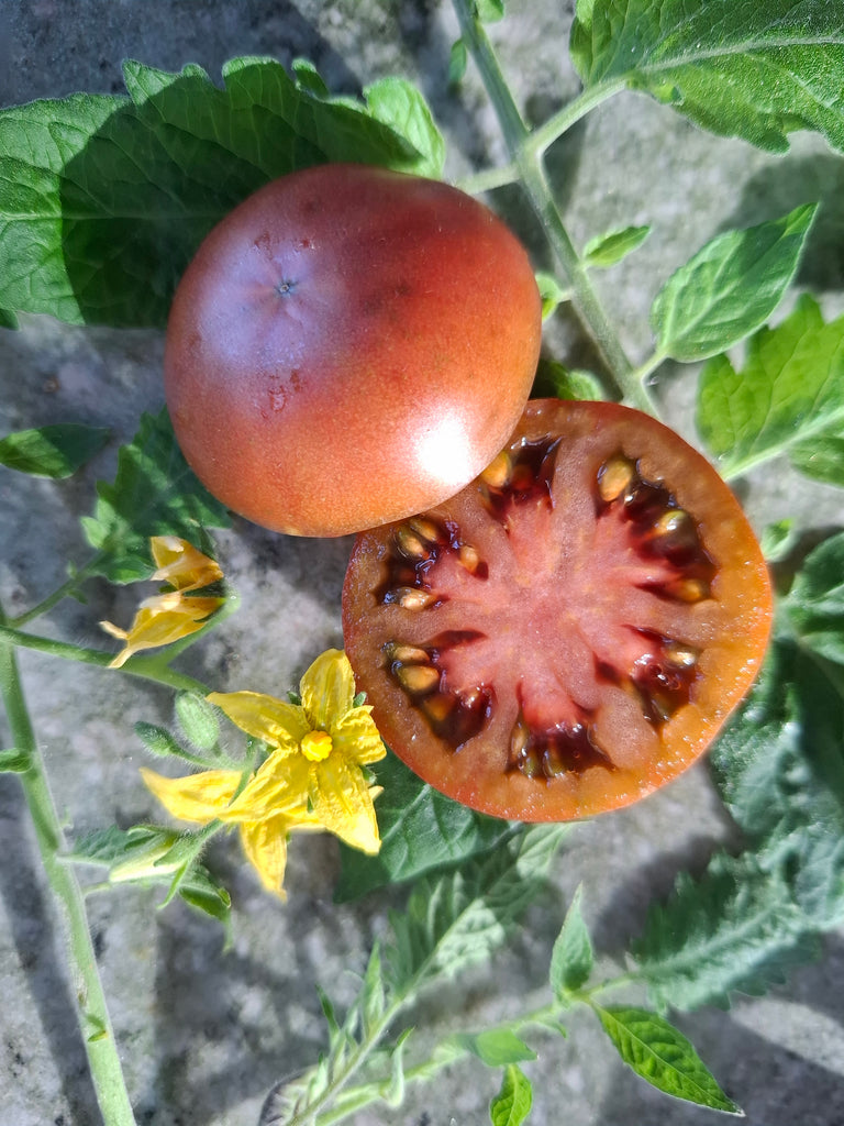 Wundervolle kleine dunkle Fleischtomate, zarter Schmelz, fruchtig süß im Geschmack, Geheimtip des Jahres 2025!
