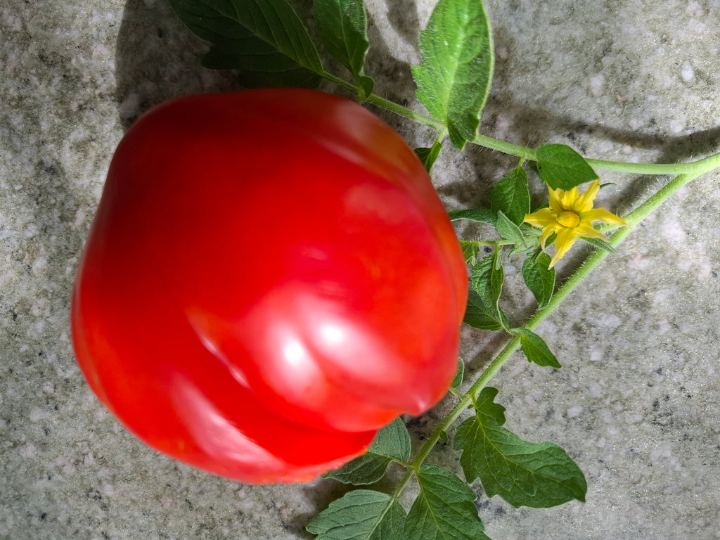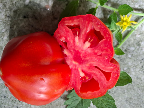 Sehr aromatische kleinere Sardische Ochsenherztomate, gekauft bei einer Bäuerin im Juli 25 auf Sardinien